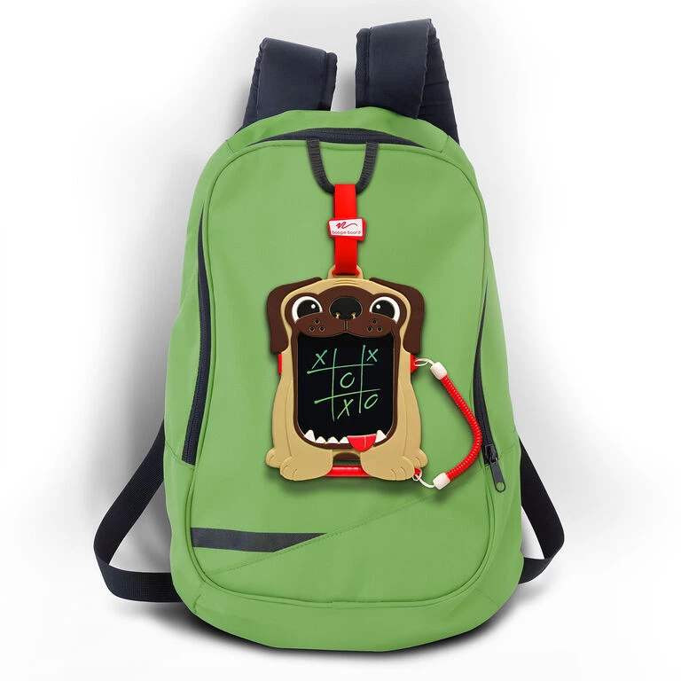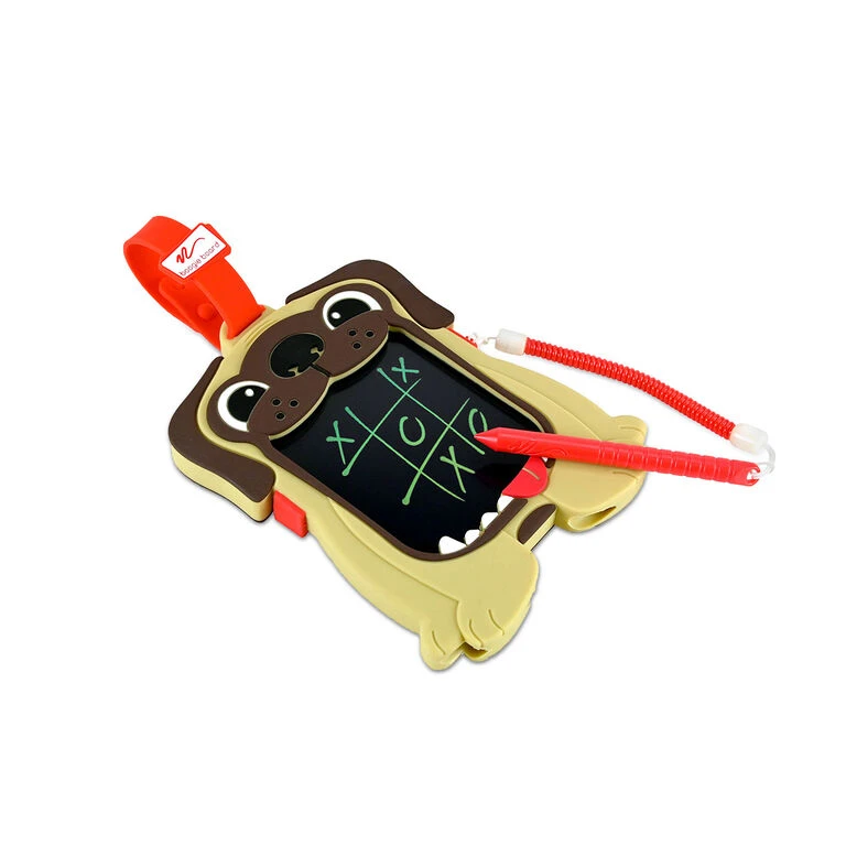 - Puppy mini sketch board features attached stylus and rubber clip.