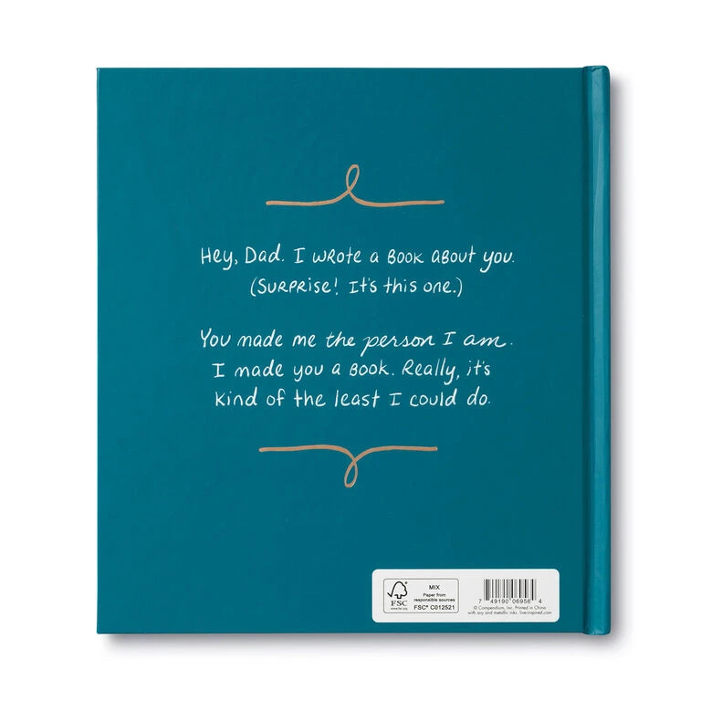 - Dad, I Wrote a Book About You hardcover book by Compendium features fill-in-the-blank prompts.