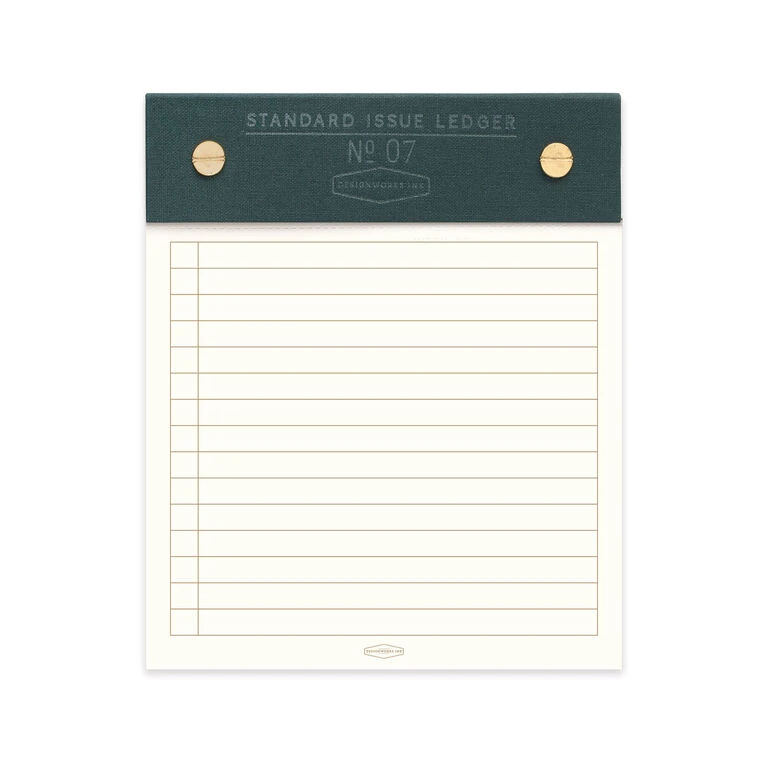 Take note…you’ll be on-trend and prepared to jot down every important detail when you add this stylish Standard Issue post bound note pad to your deskscape. With a dark green book cloth header and 120 perforated and lined sheets, you’ll be set up in note-taking style. Lined ledger makes a great gift to celebrate a grad or a new job.