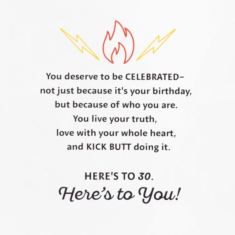 You deserve to be celebrated—not just because it’s your birthday, but because of who you are. You live your truth, love with your whole heart, and kick butt doing it. Here’s to 30. Here’s to you!