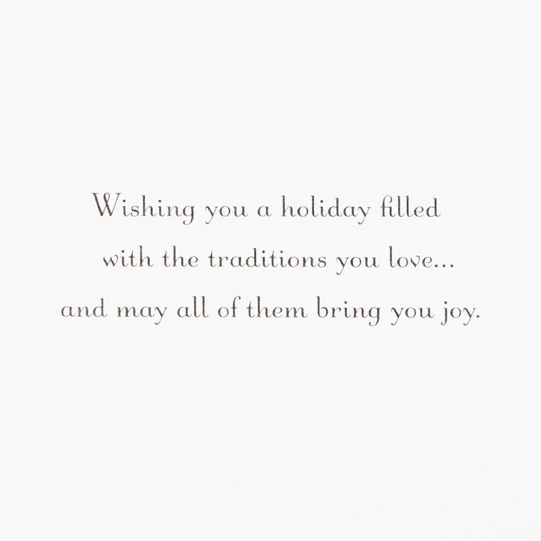 Season’s Greetings; Wishing you a holiday filled with the traditions you love…and may all of them bring you joy.