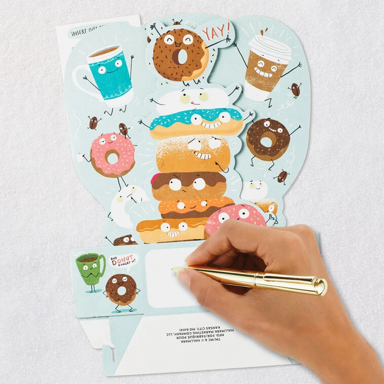 Pocket securely holds a standard-size gift card (not included). Simply pull down on sides of the pop-up card and push up base to pop it open and lock into place for displayāno assembly required.