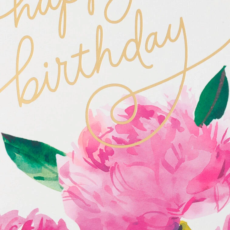 Pink peonies design: Happy Birthday; Celebrating someone today who’s amazing all year!