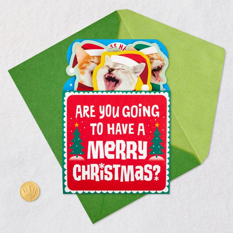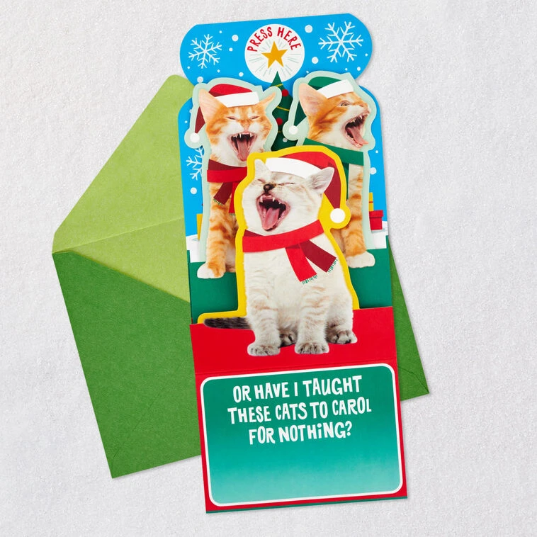 Musical card plays cats meowing along to the “Jingle Bells” song.