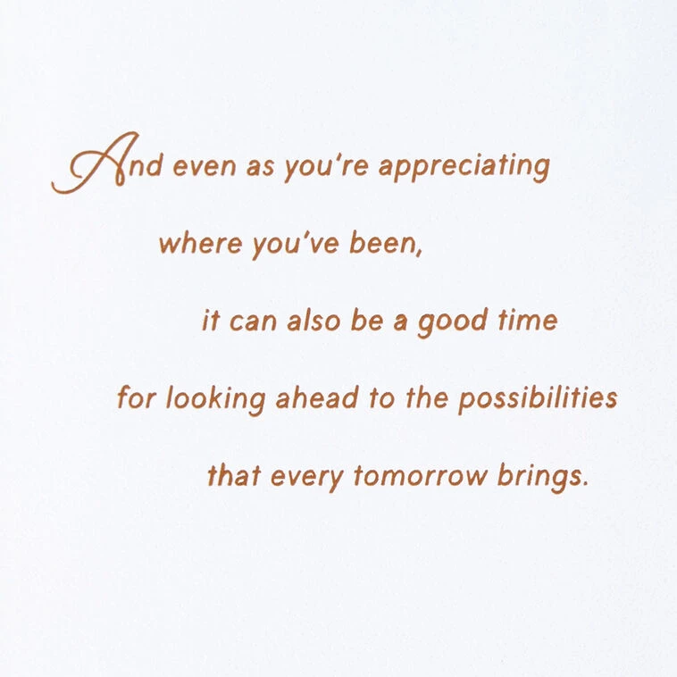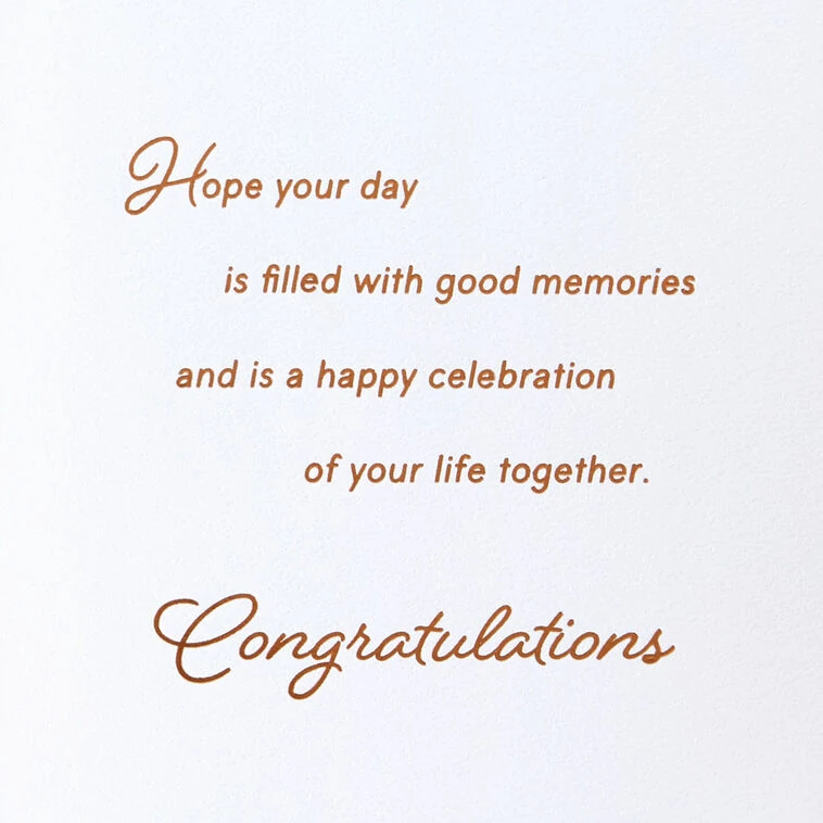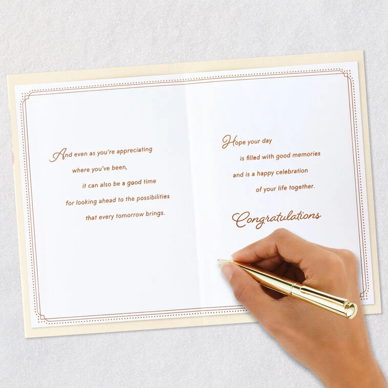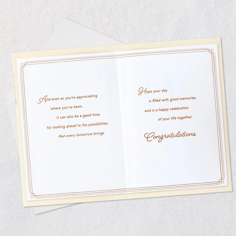 And even as you’re appreciating where you’ve been, it can also be a good time for looking ahead to the possibilities that every tomorrow brings. Hope your day is filled with good memories and is a happy celebration of your life together. Congratulations.