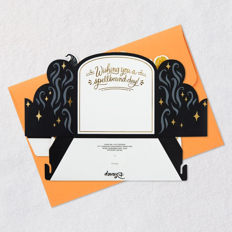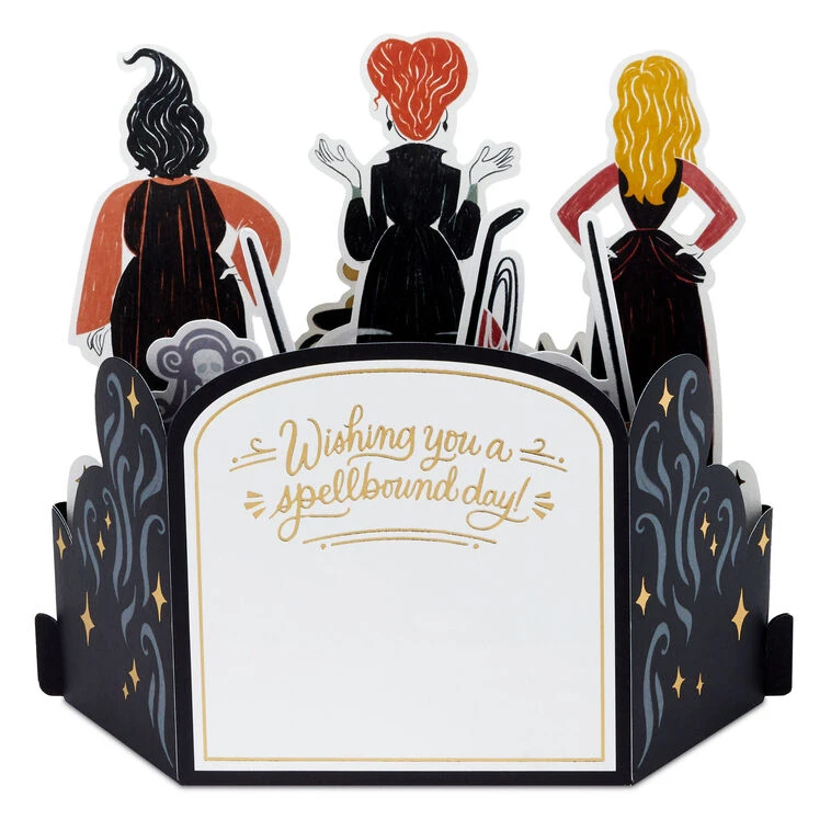 Simply pull down on sides of the pop-up card and push up base to pop it open and lock into place for display—no assembly required.