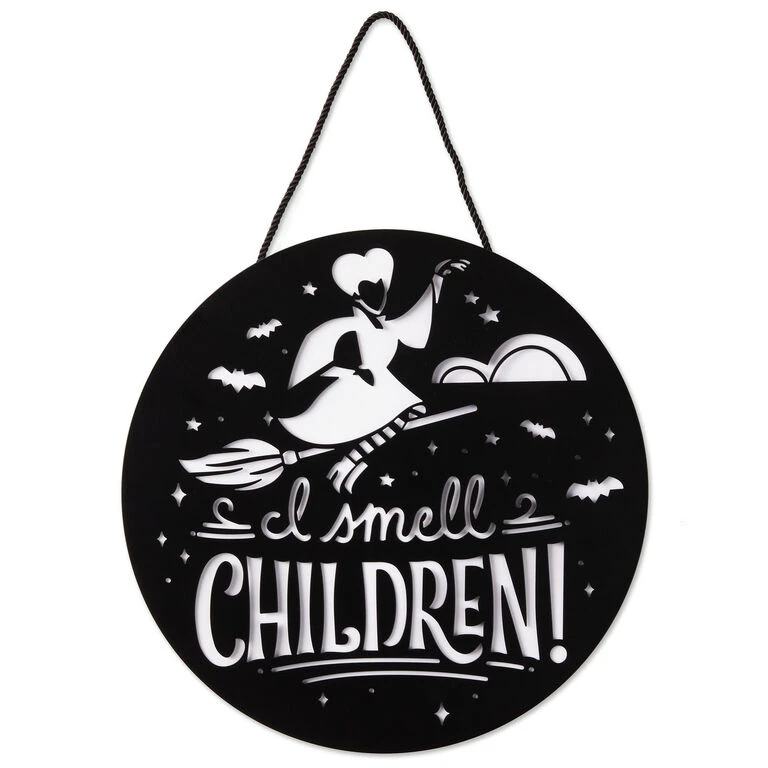 - On sign: “I smell children!”