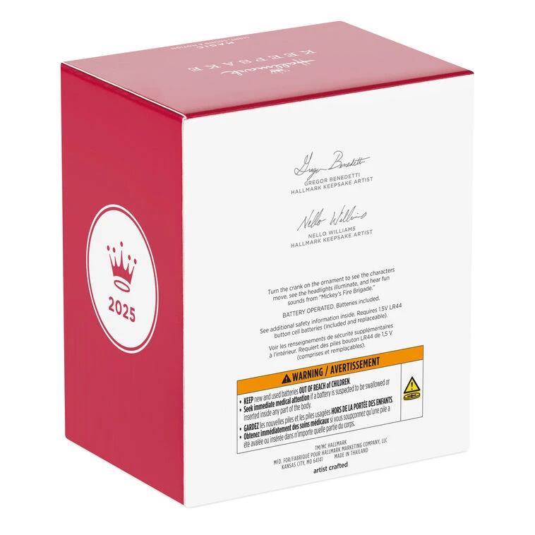 Ornament plays fun sounds and music from “Mickey’s Fire Brigade.”