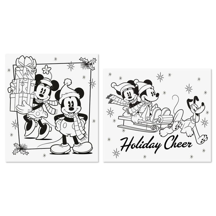 Mickey Mouse Letters to Santa stationery kit includes 2 designed letter-writing sheets (one blank, one with writing prompts), 2 designed coloring pages, 2 designed envelopes, 1 sticker sheet and 4 crayons.