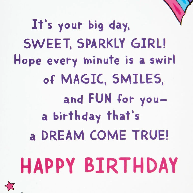 It’s your big day, sweet, sparkly girl! Hope every minute is a swirl of magic, smiles, and fun for youāa birthday that’s a dream come true! Happy Birthday