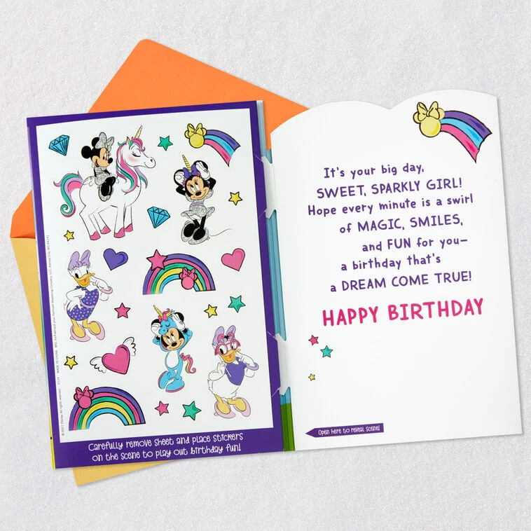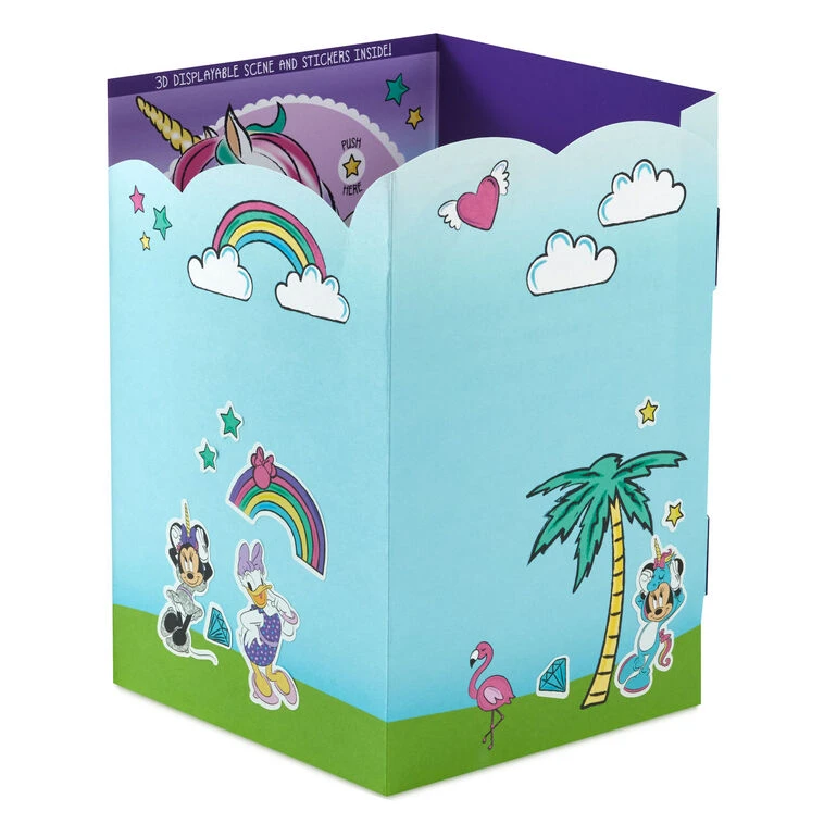 Press value to activate music feature. Simply unfold the card to display the 3D play scene, then use the enclosed stickers for decorating fun!