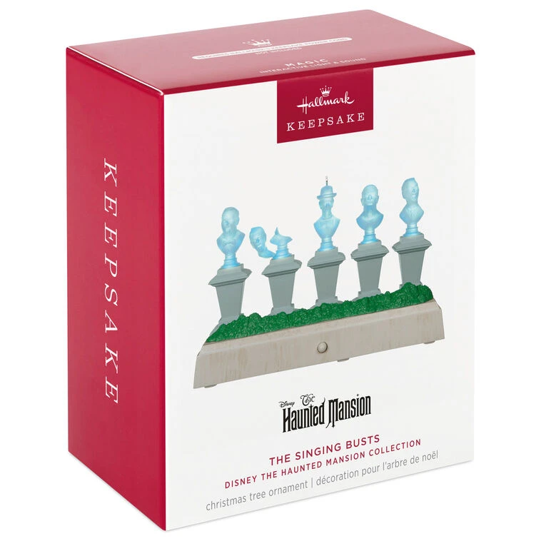 Ornament plays music, dialogue and sound effects from the Disney Parks attraction The Haunted Mansion.