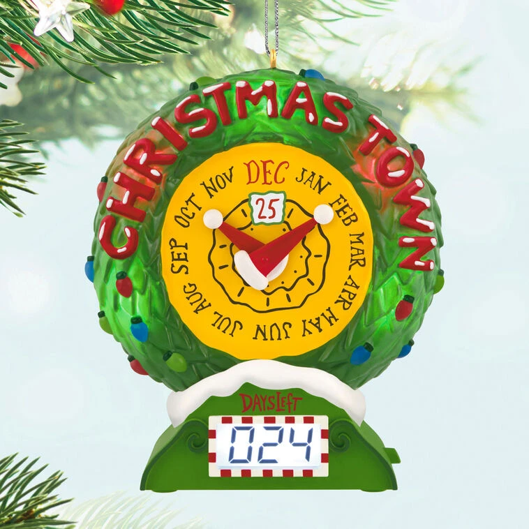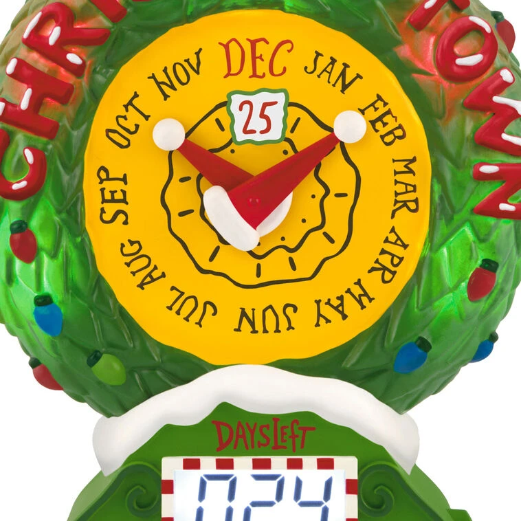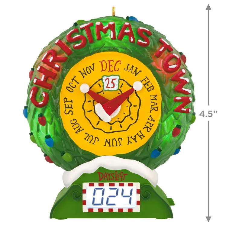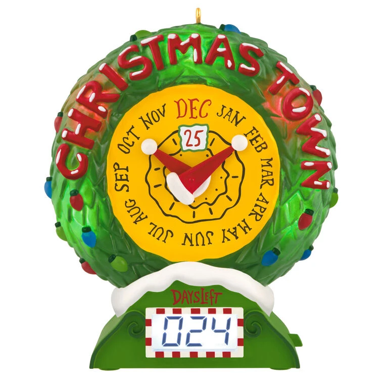 Press the value on the Magic Light, Sound and Motion ornament to see it illuminate and hear music while the hands on the clock face spin. Each time the value is pushed, the countdown will advance. Press and hold the value to manually adjust the countdown and advance multiple days.