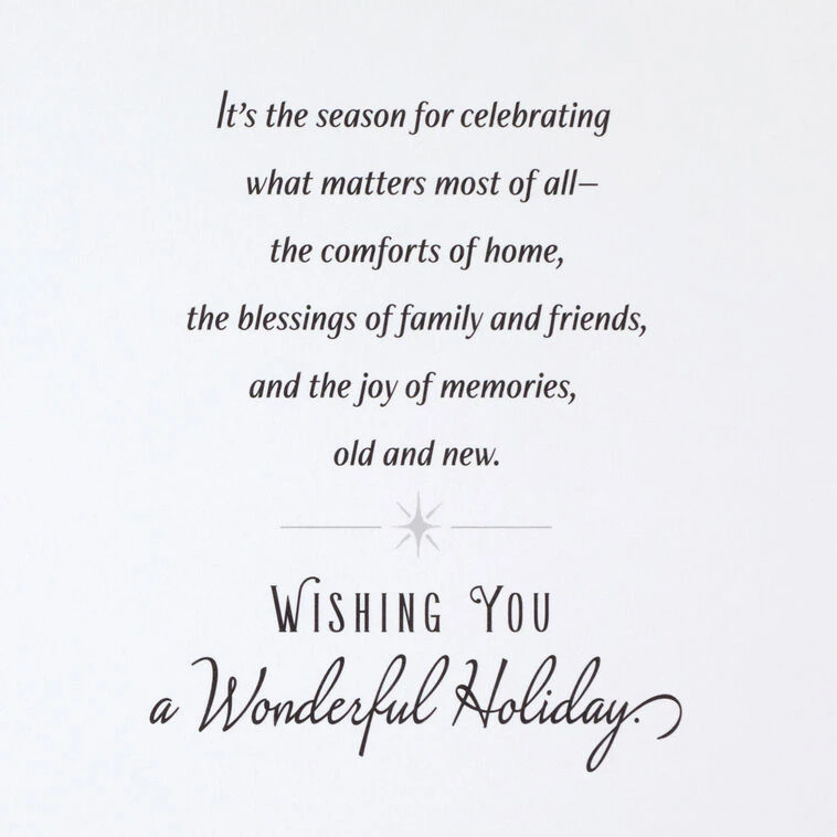 Merry Christmas; It’s the season for celebrating what matters most of all–the comforts of home, the blessings of family and friends, and the joy of memories, old and new. Wishing you a wonderful holiday.