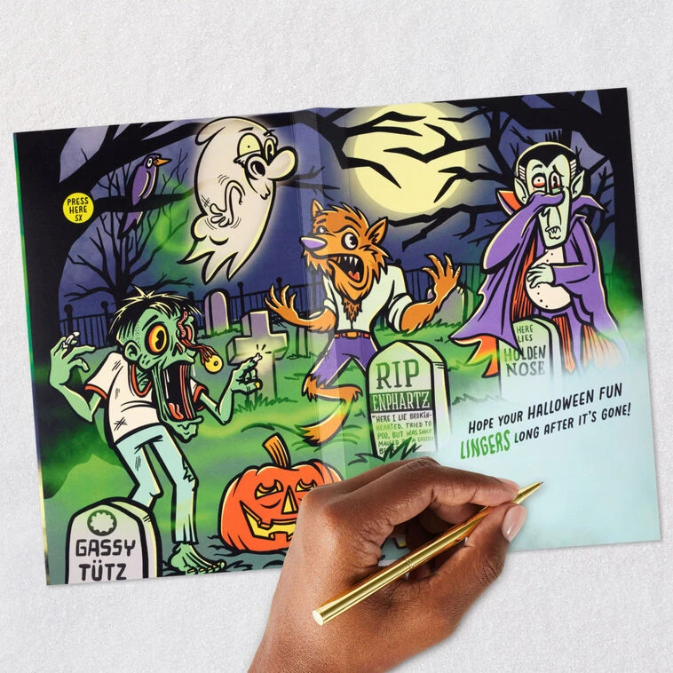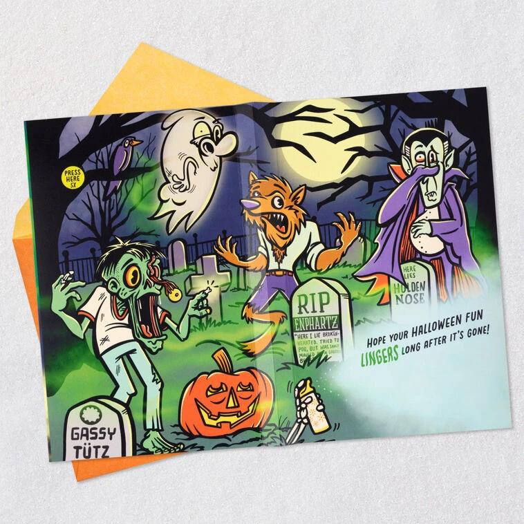 Interactive card with sound plays funny fart noises and jokes.