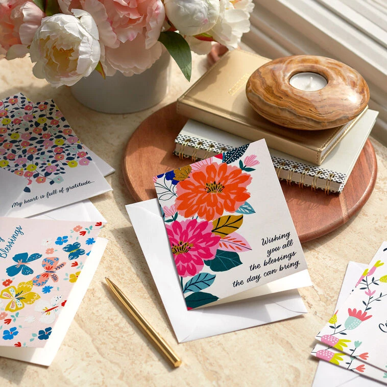 Bright blooms design: Wishing you all the blessings the day can bring.; (blank inside)