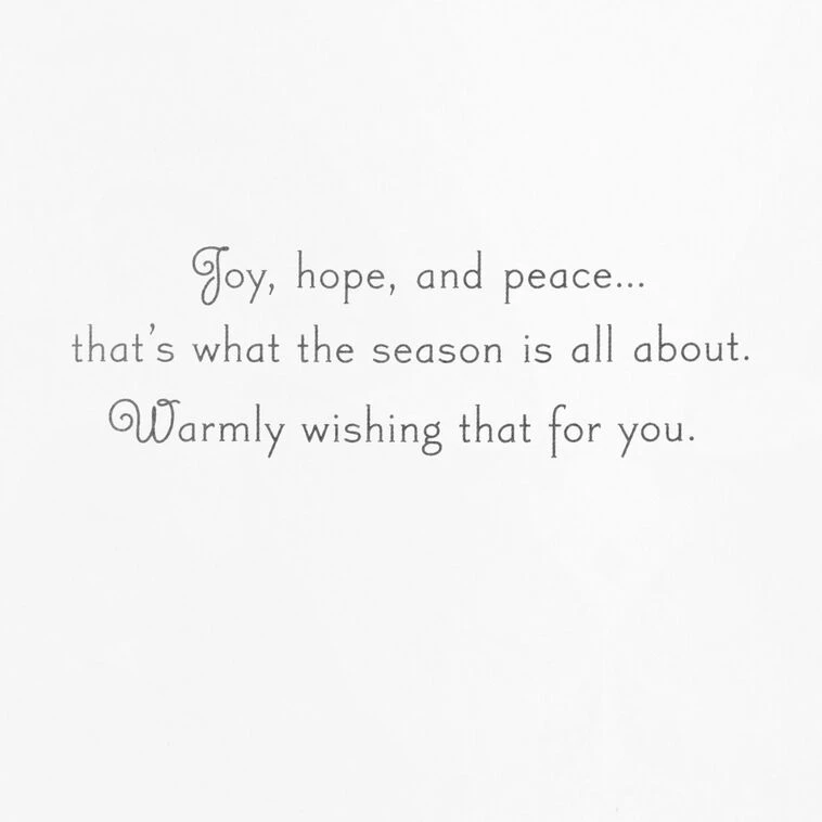 Christmas Wishes; Joy, hope, and peace… that’s what the season is all about. Warmly wishing that for you.