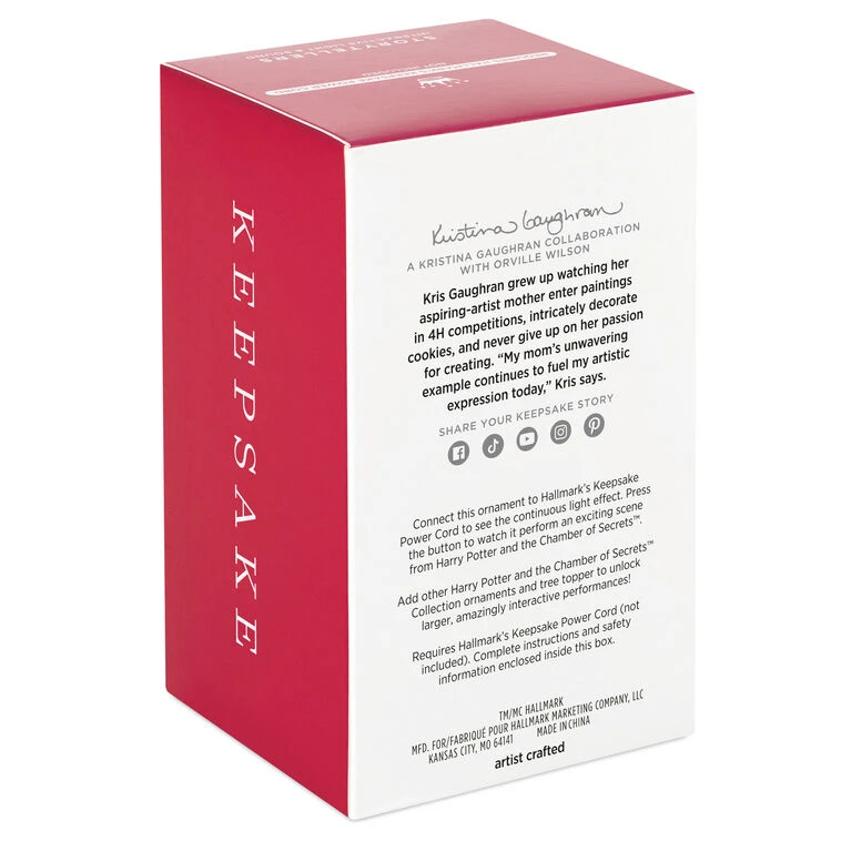 Connect the Storytellers Interactive Light and Sound ornament to Hallmark’s Keepsake Power Cord (sold separately) to see a continuous light effect. Press the value to watch it perform a scene. Add other Harry Potter and the Chamber of Secrets Collection ornaments and tree topper to unlock larger, amazingly interactive performances.