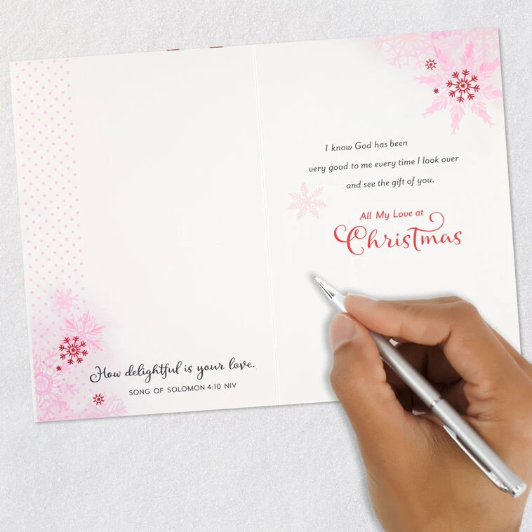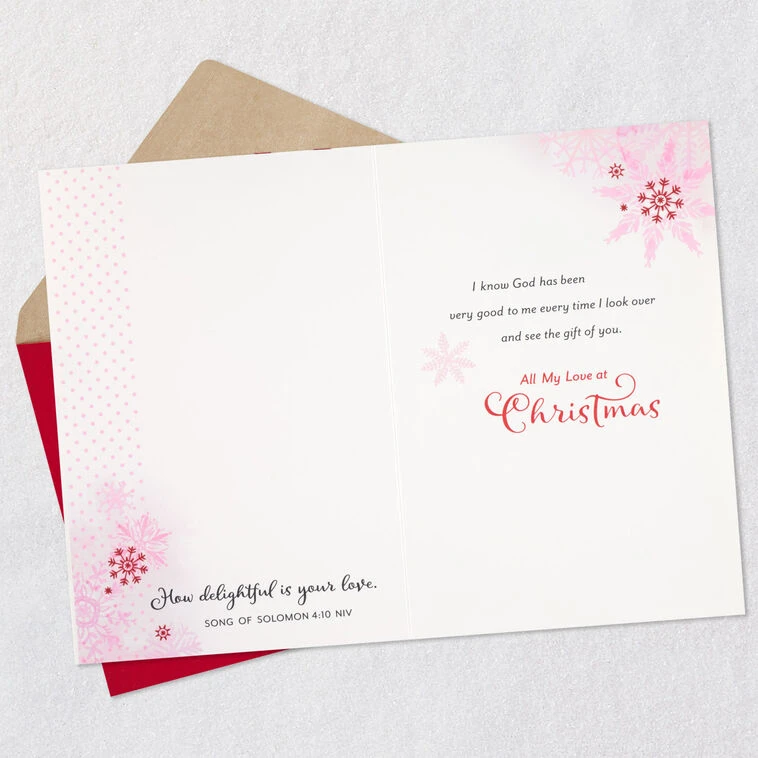 I know God has been very good to me every time I look over and see the gift of you. All My Love at Christmas. “How delightful is your love.” Song of Solomon 4:10 NIV