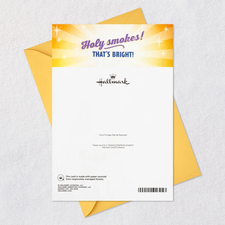 Pop-up card displays a birthday cake with lights inside and plays a birthday version of the “Hallelujah Chorus.”