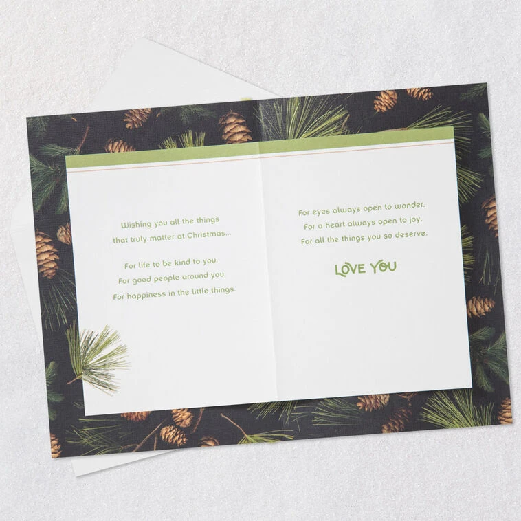 Wishing you all the things that truly matter at Christmas… For life to be kind to you. For good people around you. For happiness in the little things. For eyes always open to wonder. For a heart always open to joy. For all the things you so deserve. Love you