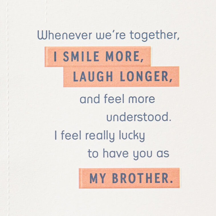 Every time we’re together, I realize it’s been too long since we’ve sat across the table from each other talking & joking. Whenever we’re together, I smile more, laugh longer, and feel more understood. I feel really lucky to have you as my brother.