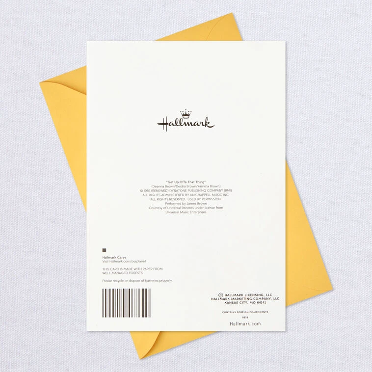 Card plays the song “Get Up Offa That Thing” by James Brown.