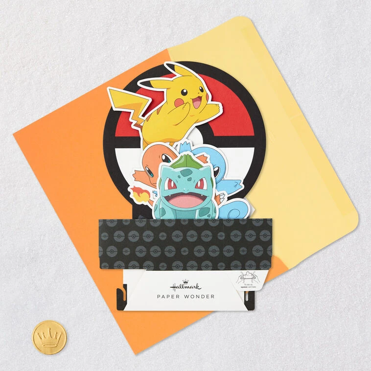 Simply pull down on sides of the pop-up card and push up base to pop it open and lock into place for display—no assembly required.