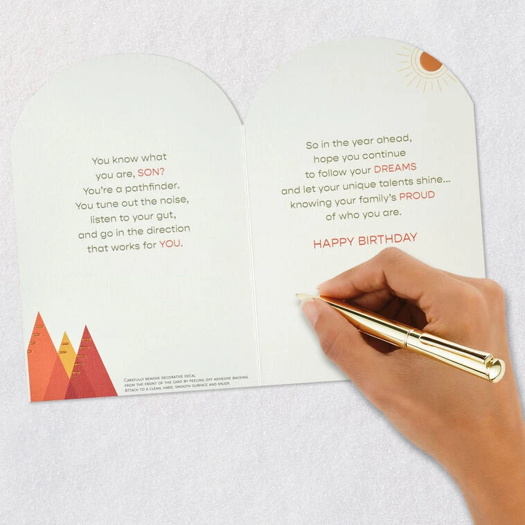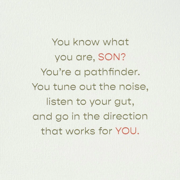 You know what you are, son? You’re a pathfinder. You tune out the noise, listen to your gut, and go in the direction that works for you. So in the year ahead, hope you continue to follow your dreams and let your unique talents shine… knowing your family’s proud of who you are. Happy Birthday