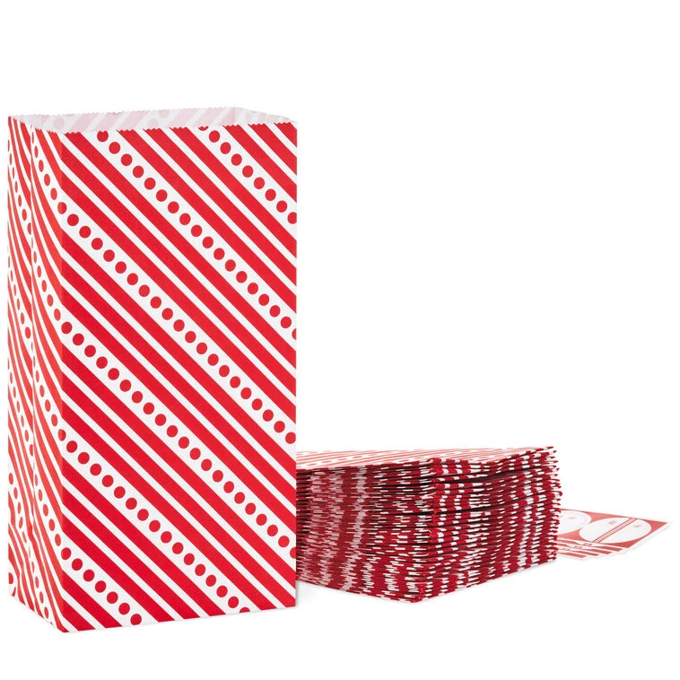 Send holiday and birthday party guests home with a smile when you give them these cute party favor bags on their way out. This pack of 30 red-and-white striped bags includes 30 coordinating gift tag stickers. Perfect for presenting gifts and treats at Christmas, Valentine’s Day and birthday parties. These goodie bags are perfect for holding wrapped candies and snacks, small toys, or wedding and party favors.