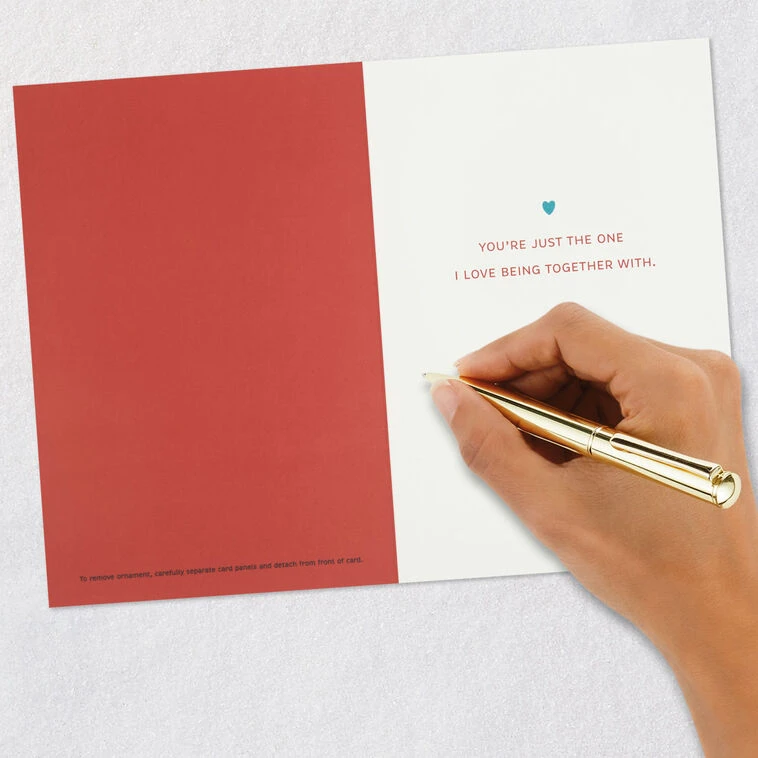 To remove ornament, carefully separate card panels and detach from front of card.