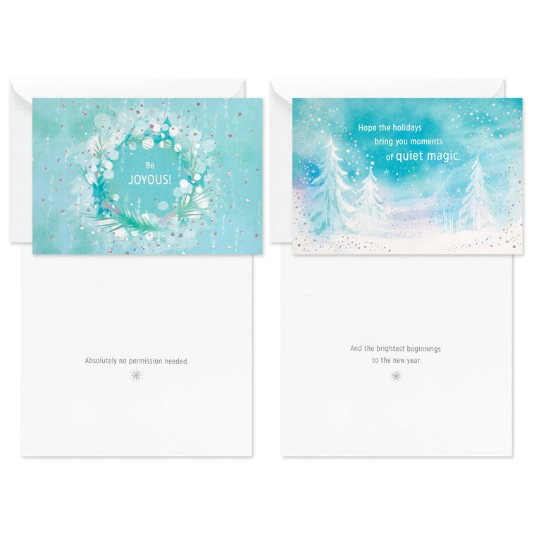 Pine forest design: Hope the holidays bring you moments of quiet magic.; And the brightest beginnings to the new year.