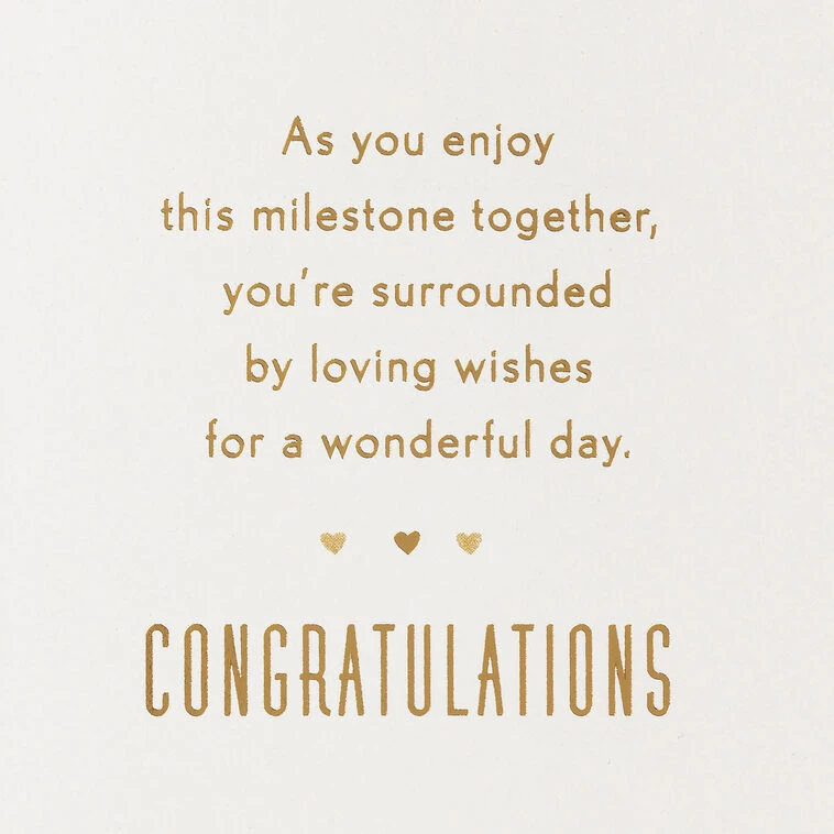 There’s simply nothing happier or more hopeful than seeing two great people like you celebrating another year together promising to love each other always. As you enjoy this milestone together, you’re surrounded by loving wishes for a wonderful day. Congratulations