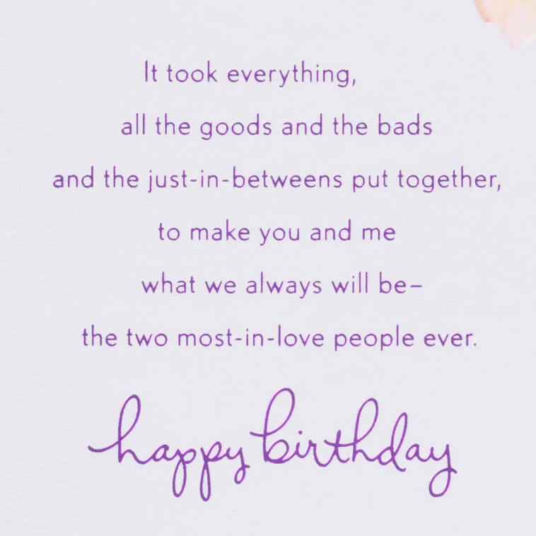 It took everything, all the goods and the bads and the just-in-betweens put together, to make you and me what we always will be—the two most-in-love people ever. Happy Birthday