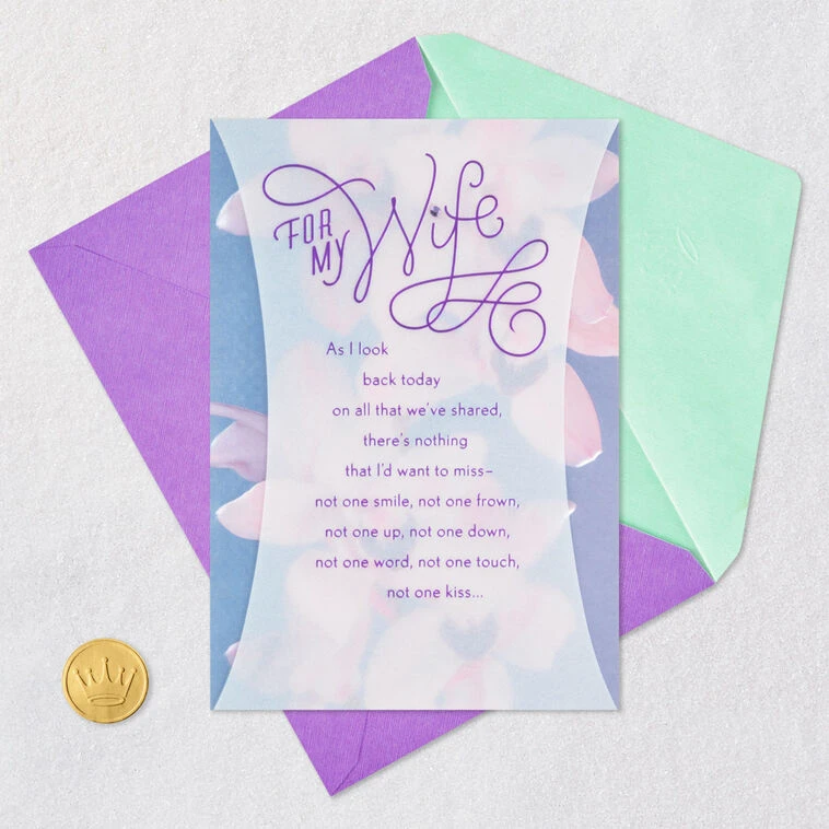 As I look back today on all that we’ve shared, there’s nothing that I’d want to miss—not one smile, not one frown, not one up, not one down, not one word, not one touch, not one kiss…