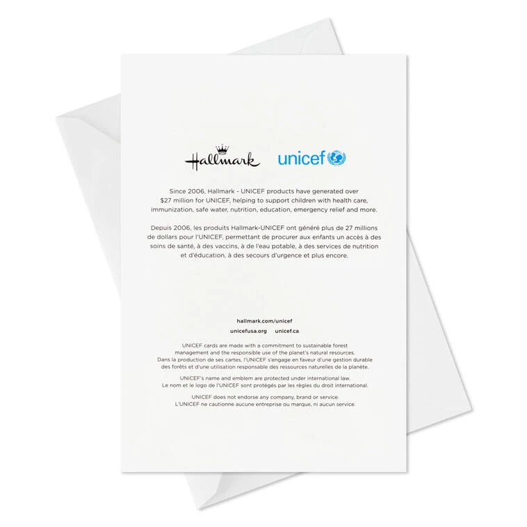 Since 2006, Hallmark – UNICEF products have generated over $27 million for UNICEF, helping to support children with health care, immunization, safe water, nutrition, education, emergency relief and more.