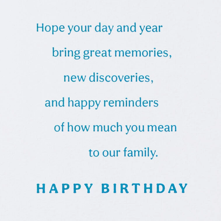 Hope your day and year bring great memories, new discoveries, and happy reminders of how much you mean to our family. Happy Birthday