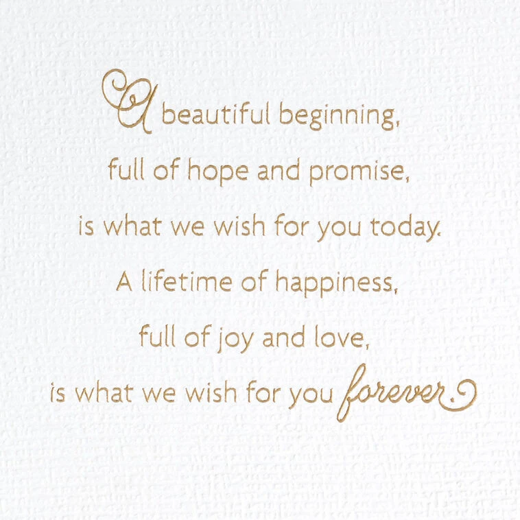 A beautiful beginning, full of hope and promise, is what we wish for you today. A lifetime of happiness, full of joy and love, is what we wish for you forever.