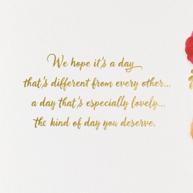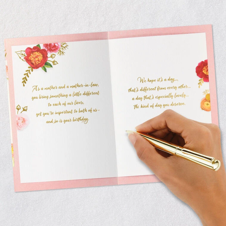 As a mother and a mother-in-law, you bring something a little different to each of our lives, yet you’re important to both of us—and so is your birthday. We hope it’s a day that’s different from every other… a day that’s especially lovely… the kind of day you deserve.