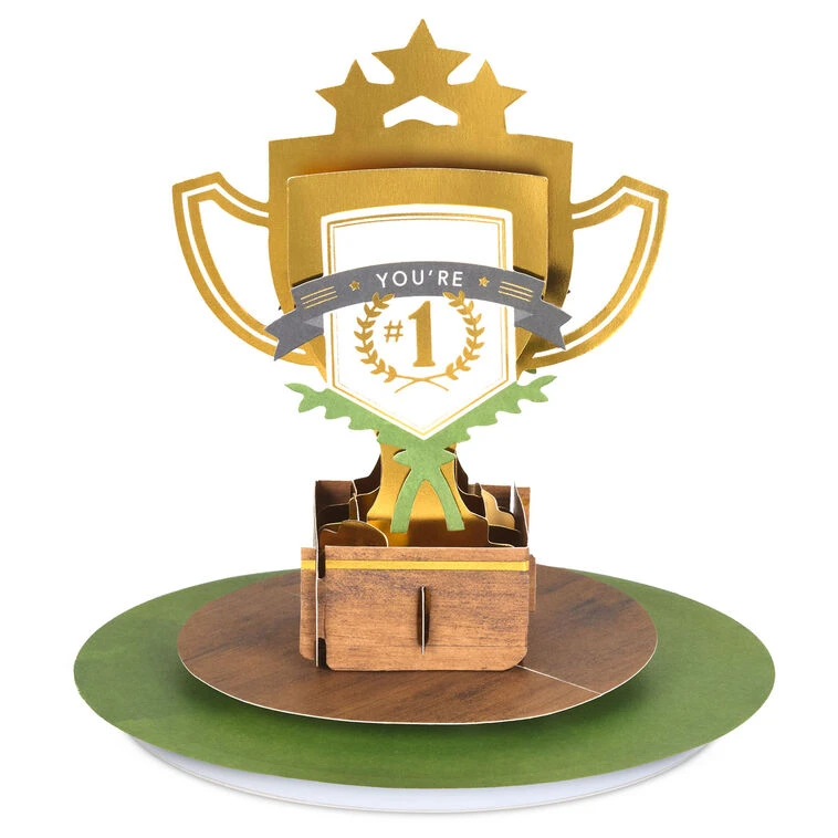Musical card plays a fun instrumental song as the trophy spins.