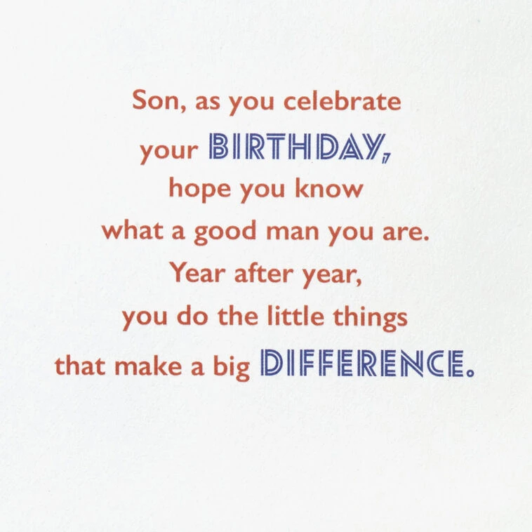 Son, as you celebrate your birthday, hope you know what a good man you are. Year after year, you do the little things that make a big difference. The kindness you show, the hard work you put in, the time you spend caring for others… all of that adds up to so much, and the world is a lot better thanks to good men like you.