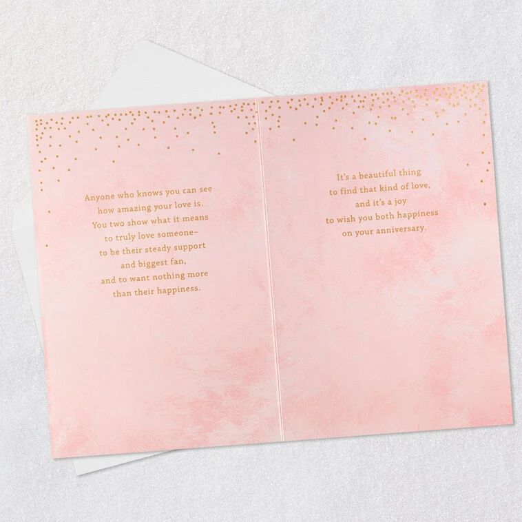 Anyone who knows you can see how amazing your love is. You two show what it means to truly love someone—to be their steady support and biggest fan, and to want nothing more than their happiness. It’s a beautiful thing to find that kind of love, and it’s a joy to wish you both happiness on your anniversary.