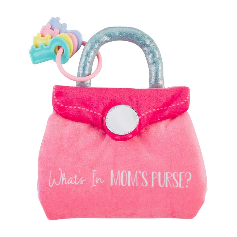 - Mud Pie “What’s in Mom’s Purse?” polyester cloth book features interactive contents.