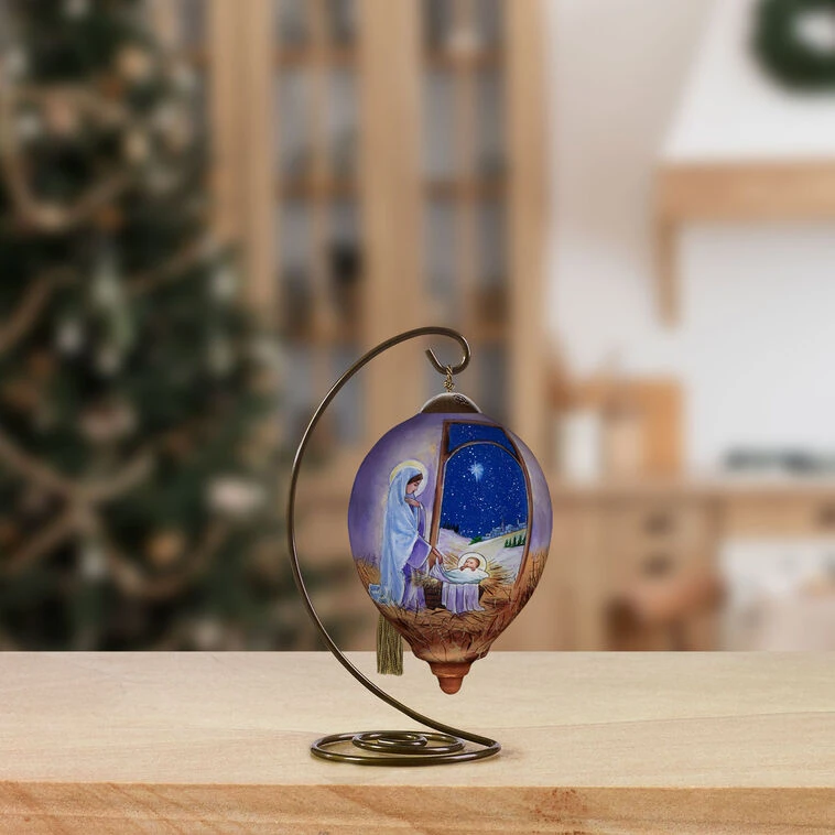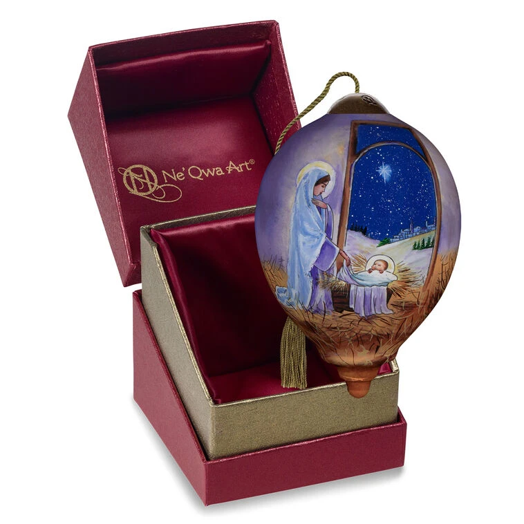 Blown-glass ornament includes a satin-lined gift box.