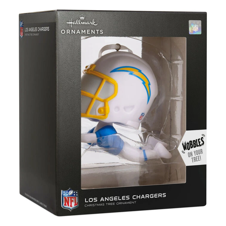Go for the win with this Christmas tree ornament that bounces and bobbles. Perfect for expressing your Chargers team spirit at the holidays and all year round, this decoration features a stylized design of a football player sporting a Los Angeles Chargers uniform and helmet and posed in a diving catch with a wobbling head.