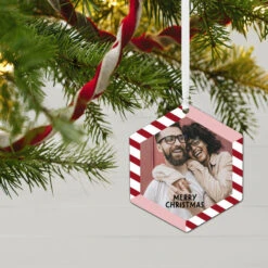 Hallmark Baby’s First Christmas Round Metal Personalized Ornament, Custom Vertical Photo And Text