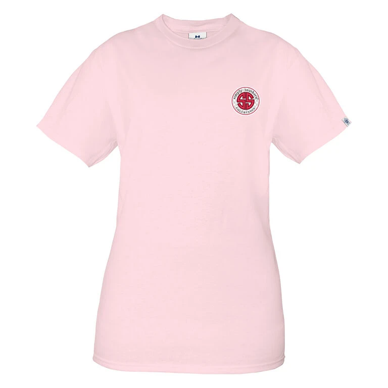 - Simply Southern pink short sleeve crew neck t-shirt.